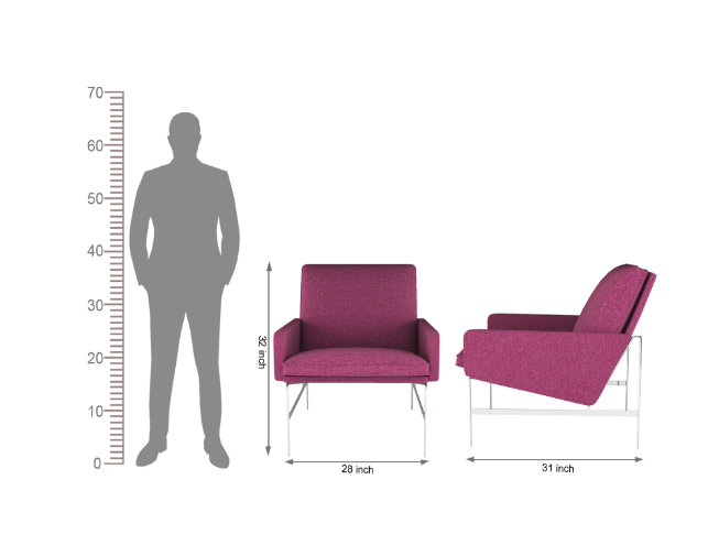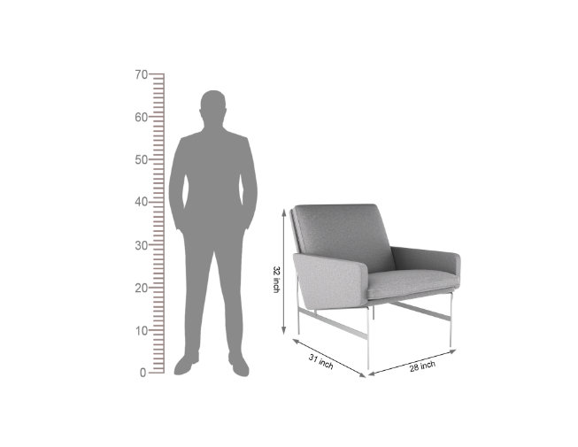 internal structure - marindi wood/ply 2. upholstry type - partly upholstered 3. fabric - molfino 4. legs - ss steel 5. finish - brush finish 6. fabric coating - fr grade 5. cushion material - foam 6. armrest - yes 7. loose cushion - no 8. recommended load - 120 kg 9. outer frame - ss steel |